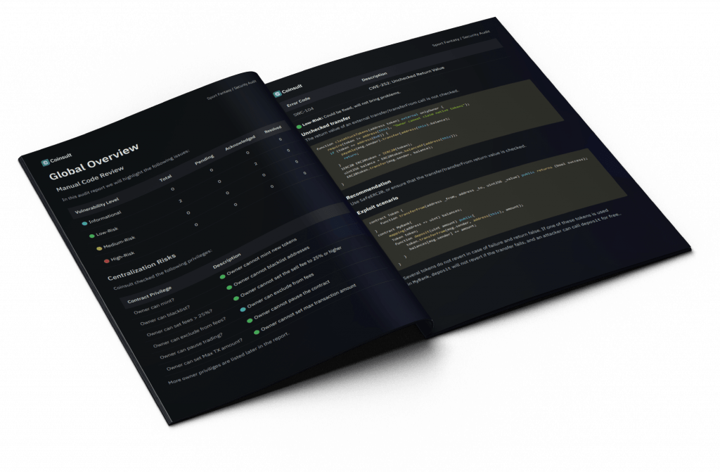 We at Coinsult are aware of the speed at which the cryptocurrency market is operating. We therefore strive to complete the majority of audits in less than a day following the payment. Naturally, if the contract you wish audited is particularly large and intricate, this delivery time may change but we will let you know beforehand. Additionally, we place a high premium on service and make every effort to be reachable throughout the day.